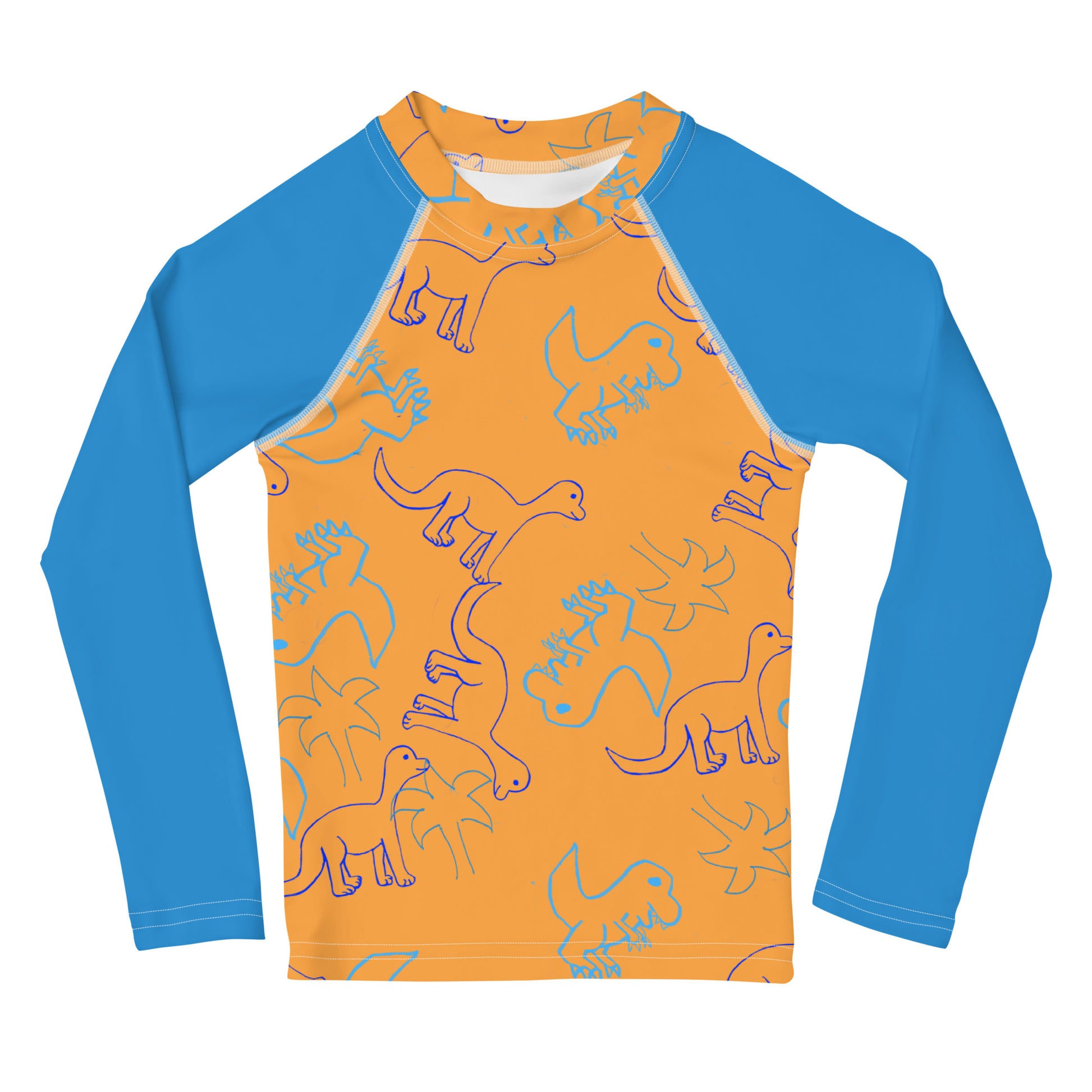 Boys Rash Guard Orange and Blue Dinosaurs (Sizes 2T-7)