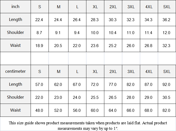 | centimeter | S | M | L | XL | 2XL | 3XL | 4XL | 5XL |