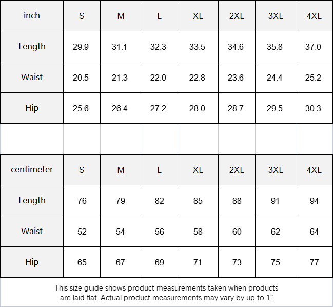 This size guide shows product measurements taken when products are laid flat. Actual product measurements may vary by up to 1".
