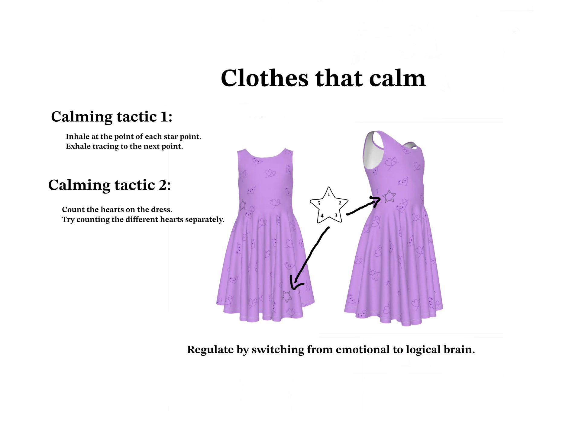 Being a kid can be hard. We take mental health seriously and want to do what we can to help kids navigate their journey. This cute moth dress has a star design on the bodice and skirt that are a reminder to kids to breathe, count, and hopefully calm.